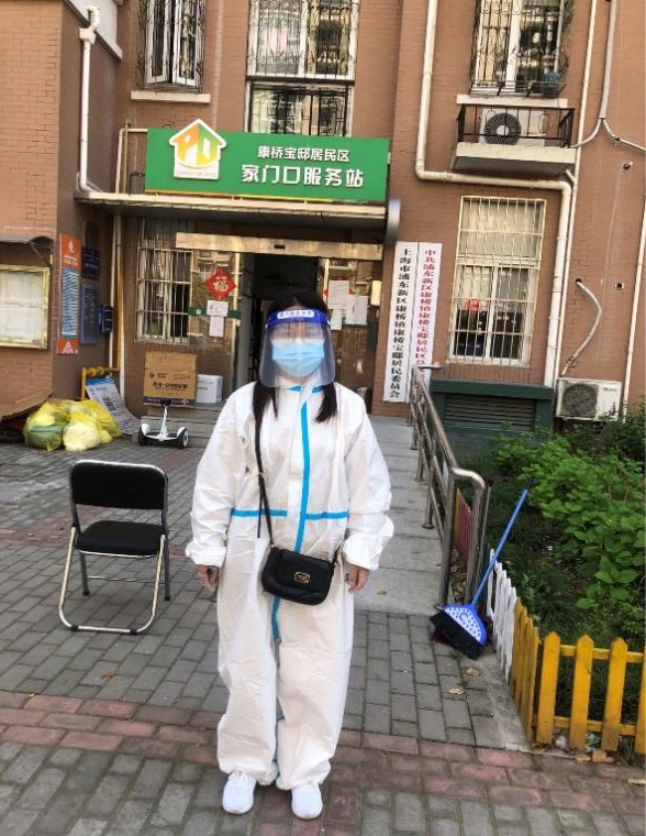 4月2日晚上,同楼栋十楼的一位独居老人突然大出血,需要立刻送往医院急救,她第一时间跑到居委办理手续,并叫上爱人连同一位热心阿姨连夜开车将老人送往附近的曙光医院,但因曙光医院有确诊病人要进行消杀,不得已又赶往仁济医院南院进行急救。到医院后,她又跑前跑后帮助老人完成挂号、付费等一切手续。在医生的及时救治下,老人情况终于好转。在医院里,她尽力安慰老人,一直等到老人的子女凌晨三点多赶到医院才放心地返回家中。她和爱人的举动也受到了同楼栋住户的一致称赞。