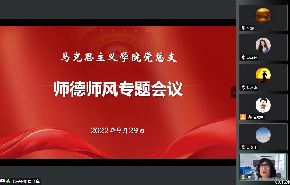 9月29日,马克思主义学院党总支召开师德师风建设专题研讨会。会议由学院党总支书记宋艳华主持,马院全体党员和教师参加了本次研讨会。