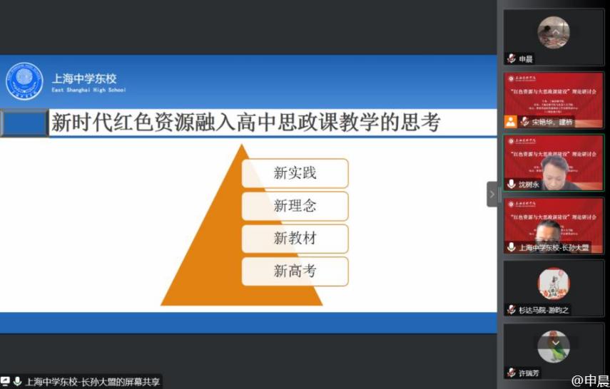 主题发言第三阶段,由上海建桥学院马克思主义学院副院长沈树永主持。上海杉达学院马克思主义学院副院长(主持工作)游昀之结合民办高校开展红色资源融入高校思政课教育教学现状,作“红色资源融入思政课实践教学的系统性建设”的主题发言。她指出,推进红色资源与大思政课深度融合要在思政实践教学中始终注重教学特征、注重实践教学系统的设计、促进大资源系统的整合。上海中学东校政治课教师长孙大盟结合大中小学思政课一体化改革背景和高中一线的思政课教学实践经历,作“新时代红色资源融入高中思政课教学的思考”的主题发言。他提出要全面把握大中小学教材的一体化逻辑,深度挖掘红色资源内涵,通过构建大中小学教师一体化备课的研训平台和大中小学思政红色资源图谱,贯穿大中小各学段,实现全学段备课,推进临港新片区大思政课实验区的建设。上海建桥学院马克思主义学院朱漪教授以“用好红色场馆,讲好大思政课”作主题发言,他介绍了上海建桥学院依托独具特色的三馆育人资源,充分发挥红色场馆和雷锋精神育人成效推动教育教学创新,构建大中小学大思政课一体化建设新格局的具体路径、实践探索和经验思考。上海海洋大学马克思主义学院院长董玉来教授作总结点评,他指出,三位专家从不同角度畅谈红色资源融入思政课的内容、方法、路径与成效,接下来要认真思考如何把好的做法进行推广、进行协同创新。