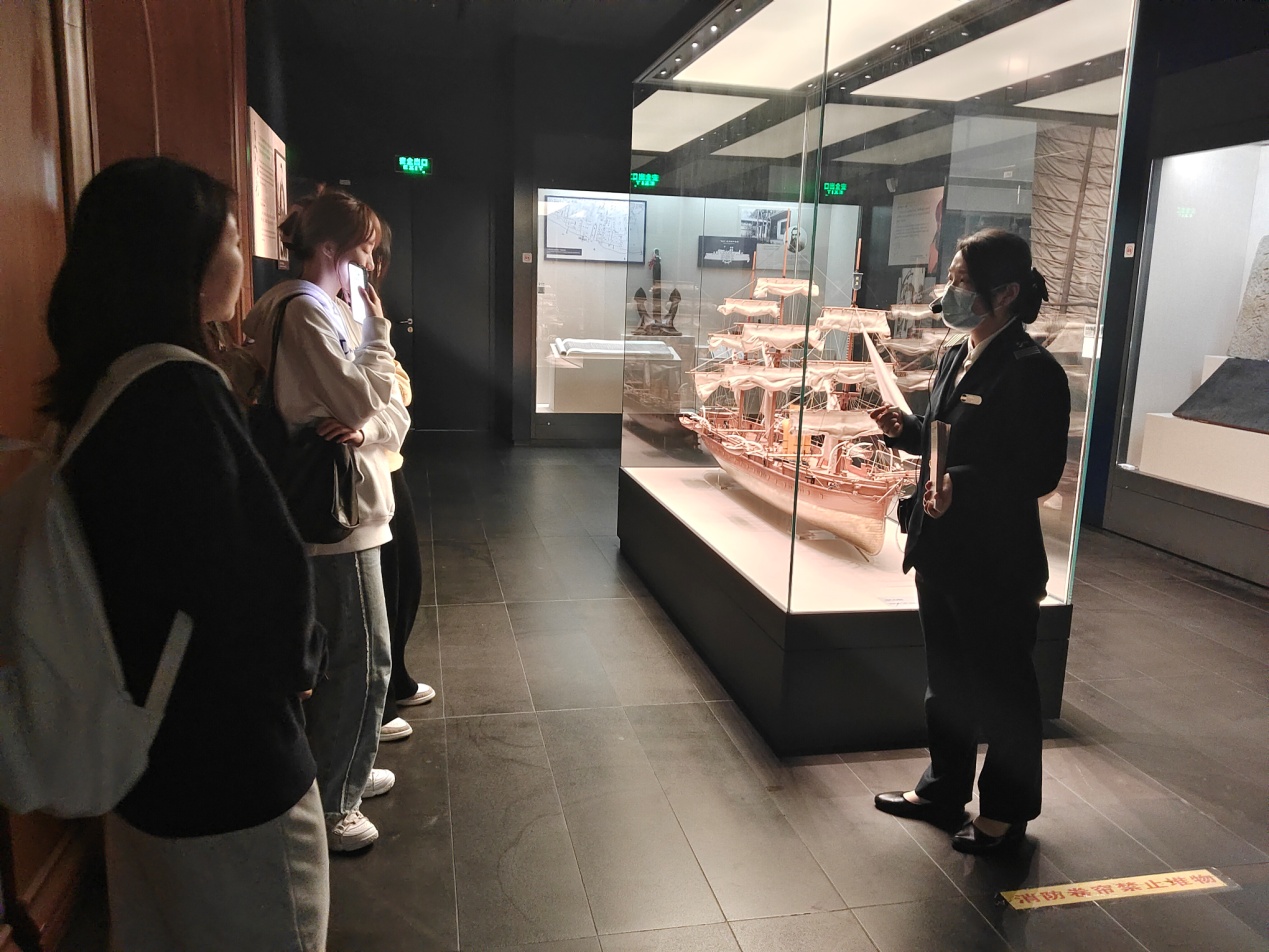 4月12号上午,上海建桥学院2022级英语、数媒艺术、视觉传达三个专业120名学生,在费志杰老师的带领下,乘坐三辆大巴抵达中国航海博物馆,展开了场馆教学之旅。这是《中国近现代史纲要》的既定安排,在两位专业讲解老师的辅助下,学生们从航海历史馆开始,温习中国古代史,反思中国近代史,感悟中国现代史。以行走式、全景式、体验式、操作式教学,思考中华民族的厚重历史和生生不息的民族精神,深刻理解了中国人民为什么选择了中国共产党、马克思主义、社会主义道路、改革开放,进一步坚定了中国特色社会主义道路自信、理论自信、制度自信和文化自信。