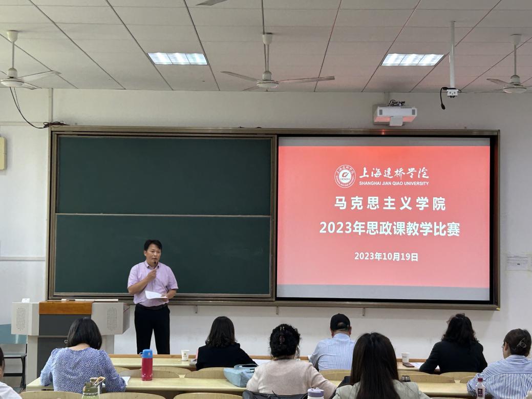 为持续提升思政课教师教育教学能力,落实立德树人根本任务,建设高水平教师队伍,马克思主义学院学院于10月19日开展了2023年思政课教师教学竞赛活动。此次比赛特邀上海电力大学马克思主义学院院长焦凤梅,上海建桥学院校长助理、教务处处长赵雷洪,上海建桥学院督导办公室主任江萍担任专家评委,商学院两名学生担任学生评委。上海建桥学院马克思主义学院副院长沈树永主持此次比赛 ,上海建桥学院马克思主义学院宋艳华院长及全体教师出席比赛。