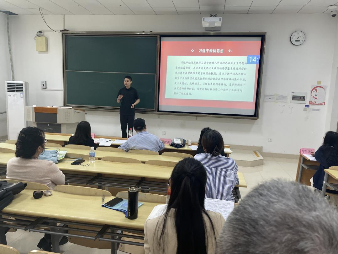 本次比赛由8分钟的说课、10分钟的教学展示环节组成,马克思主义学院的8名中青年参赛教师各显神通,有的情绪饱满、热情奔放;有的幽默风趣、氛围活跃;有的深入浅出、沉稳柔和。在说课环节,教师们纷纷从教材分析、教学目标、教学内容、教学方法、教学实施过程、教学反思等方面,阐述了课程思政教学的设计思路和内容。在教学展示环节,教师们通过生动形象的案例导入、构思巧妙的教学设计、热情洋溢的课堂讲授,展示了各具特色的教学设计和教学风采。经过3个多小时的激烈角逐,本次比赛评选出特等奖教师两名,一等奖教师三名,二等奖教师三名。