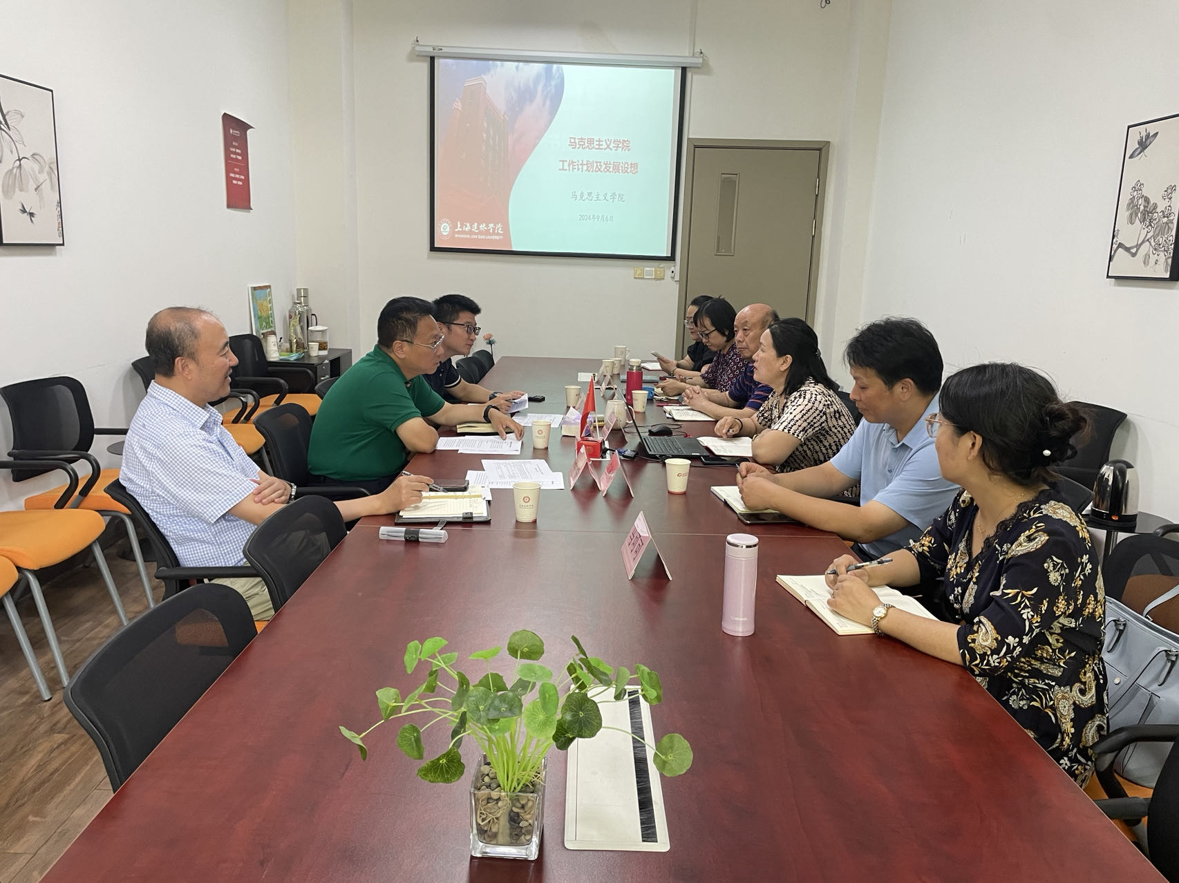 马院院长宋艳华汇报了马院围绕师资队伍建设、课程建设、学科建设、社会服务等方面开展的主要工作和取得的成效,重点汇报了获批“上海市第二批‘大思政课’建设重点试验高校”、“上海市马克思主义学院攻坚提质计划建设单位”和上海市民创B类项目(思政课与马院建设)三个重点项目的建设计划。宋艳华还就推进产教整合“马院何为?”,新进教师的综合素质和教学科研能力提升,推进“数字马院”建设等汇报了马院的工作打算。马院党总支书记胡家俊简要汇报了党建和教师思想政治工作情况。与会其他同志围绕教学、科研和党建工作提出了建议。