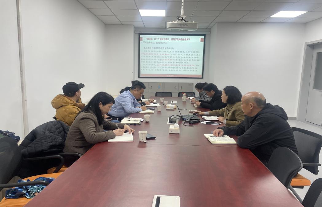 杨伟人书记讲话时,首先对马院过去的工作给予了充分肯定,表示学校党委和行政一直十分重视马院和思政课建设。杨书记指出,在学校转型发展过程中,马院面临新的形势和新的发展机遇,马院领导班子要理清思路,明确任务,细化分工,激发教职工努力进取积极性,共同推动学院发展。杨书记要求马院,一要把基层党组织建设好,推进学习型党组织建设;二要把师资队伍建设好,引育并进,提升教师教学科研能力;三要把课程建设好,协同推进大思政课建设和课程思政建设;四是把马院领导班子建设好,带好队伍,推进发展。