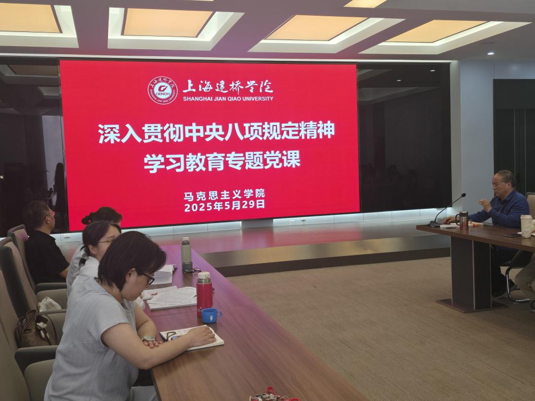 5月29日,马克思主义学院举办深入贯彻中央八项规定精神学习教育专题党课,党总支书记胡家俊主持。