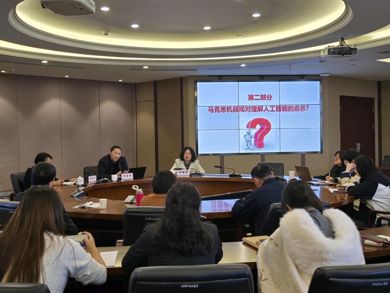 讲座尾声,马院教师就资本逻辑下的人工智能挑战和劳动是否创造幸福等问题与王教授进行了探讨。讲座最后,宋艳华院长做总结讲话,她认为本场讲座具有极高的理论深度和高度,帮助马院教师从马克思主义基本原理特别是政治经济学的视角深刻审思了人工智能的本质与应用,也回应了《马克思主义基本原理》课程教学中的诸多难题,对于马院教师如何将思政课讲深讲活讲透具有很多帮助和启发。
