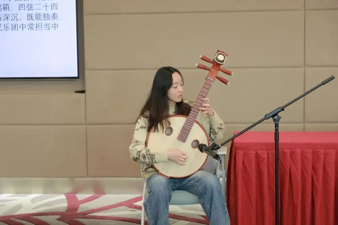 为了落实马院胡银平老师与学校港澳台事务办公室联合申报立项的国务院港澳台办项目《文化自信与上海城市发展》,加强对港澳台大学生中国文化教育,马院于2025年11月20日举办《音乐中的中国文化》讲座,由马院朱漪教授主讲。本次活动也是马院关心下一代委员会一项重要活动,校关工委成员健康管理学院卞浩老师、教育学院老师谢丹萍老师、马院林伟斌老师、健康感谢学院项忆欣表演了文艺演出。四年以来,朱漪、卞浩和谢丹萍三位老师联手打造音乐党课,受到学生热烈欢迎,成为我校党课宣传的一张名片,为学校关心新一代作出积极贡献。